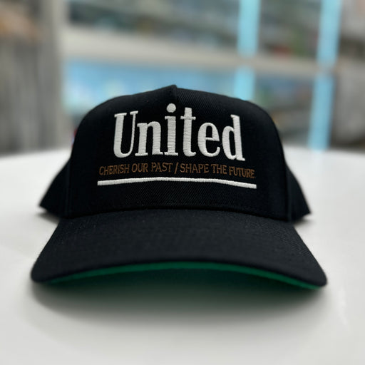 United Kicks"A" frame 5 Panel Plastic adjustable back Green under brim Embroidered front Comfortable sturdy fit Pre-curved brim Made in USA