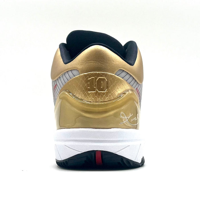 Honor the Black Mamba's Olympic legacy with the Nike Kobe 4 Protro Gold Medal (2024). This brand new pair celebrates Kobe Bryant's incredible Olympic achievements with a premium gold medal colorway that embodies championship excellence. The advanced Protro technology delivers modern performance while maintaining the classic Kobe 4 aesthetic that defined an era of basketball greatness.