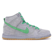 The Nike SB Dunk High "Silver Box" pays homage to one of skateboarding's most iconic eras. Released in 2016, this silhouette celebrates the legendary mid-2000s Silver Box period when Nike SB cemented its place in skate culture with premium materials and bold colorways. The Metallic Silver upper with Hyper Verde accents and Gum Yellow outsole delivers a clean, vintage aesthetic that resonates with collectors and skaters alike.